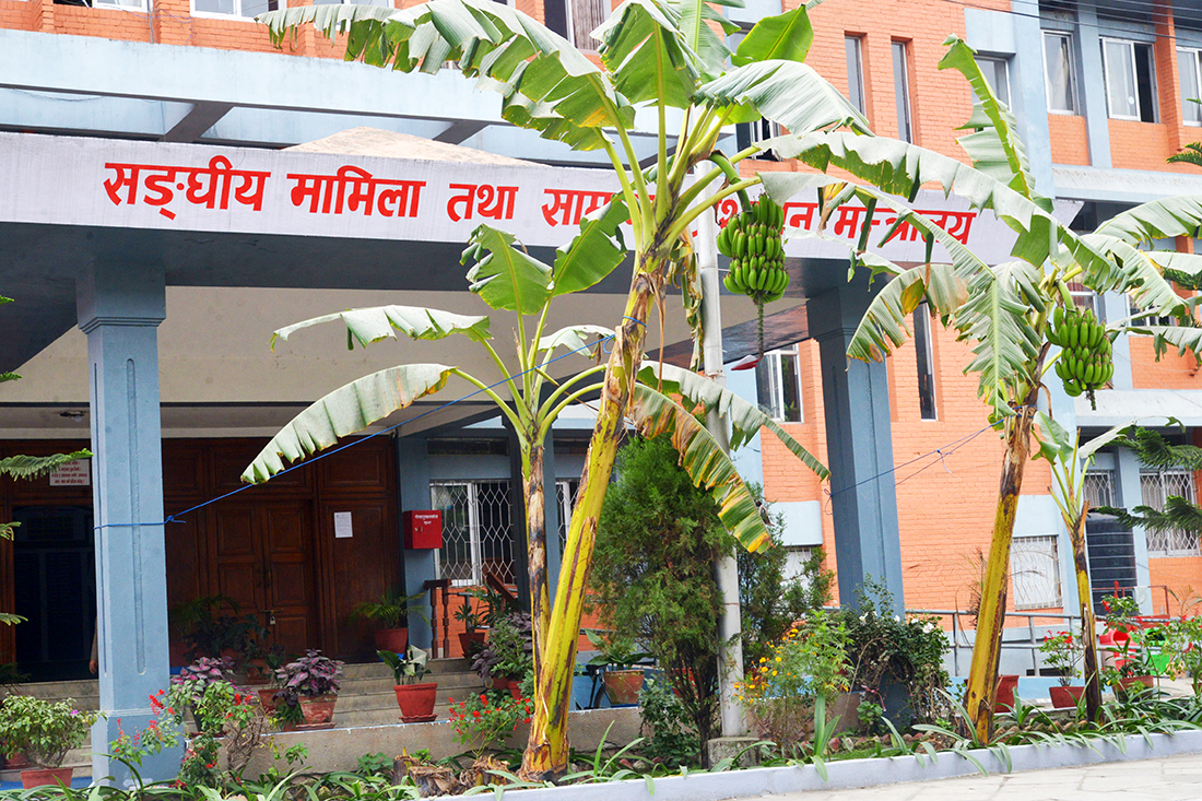 सिंहदरबारमा अर्को रोचक दृश्य पनि छ । संघीय मामिला तथा सामान्य प्रशासन मन्त्रालय अगाडि केरा फलेको छ । यो केराको बोटलाई डोरीले बाँधेर अड्याइएको छ ।