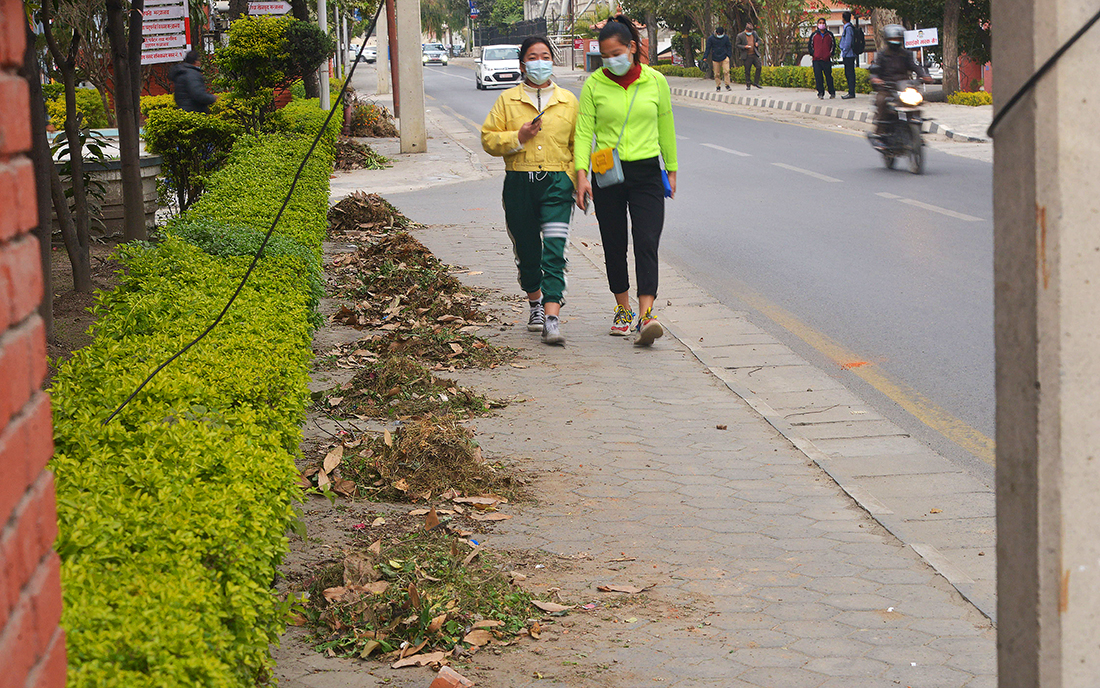 सिंहदरवारका सडक पेटिमा नालीबाट झिकेर कामदार फोहोर राखिरहेको देख्न सकिन्छ । कतै इँटा, टायरजस्ता