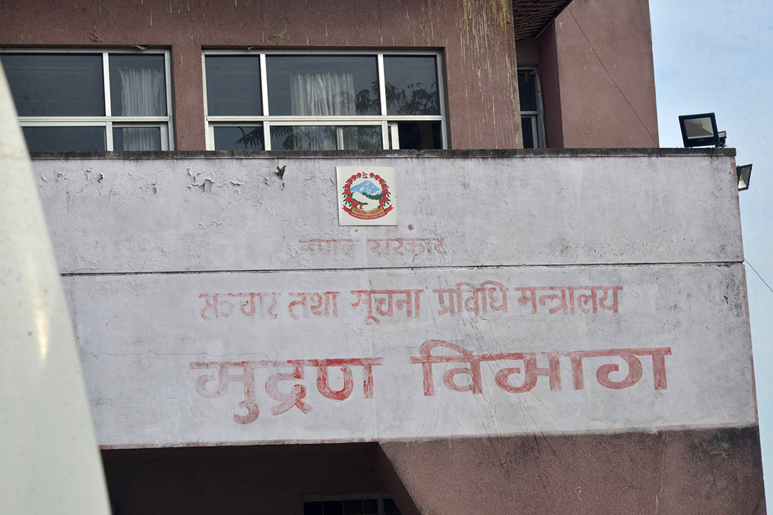 ९.सिंहदरबरभित्र मुद्रण विभागको साइन बोर्ड खुइलिएको देखिन्छ । अन्य कतिपय मन्त्रालयका बोर्डमा पनि फोहोर जमेको अवस्थामा छन् ।.jpg)