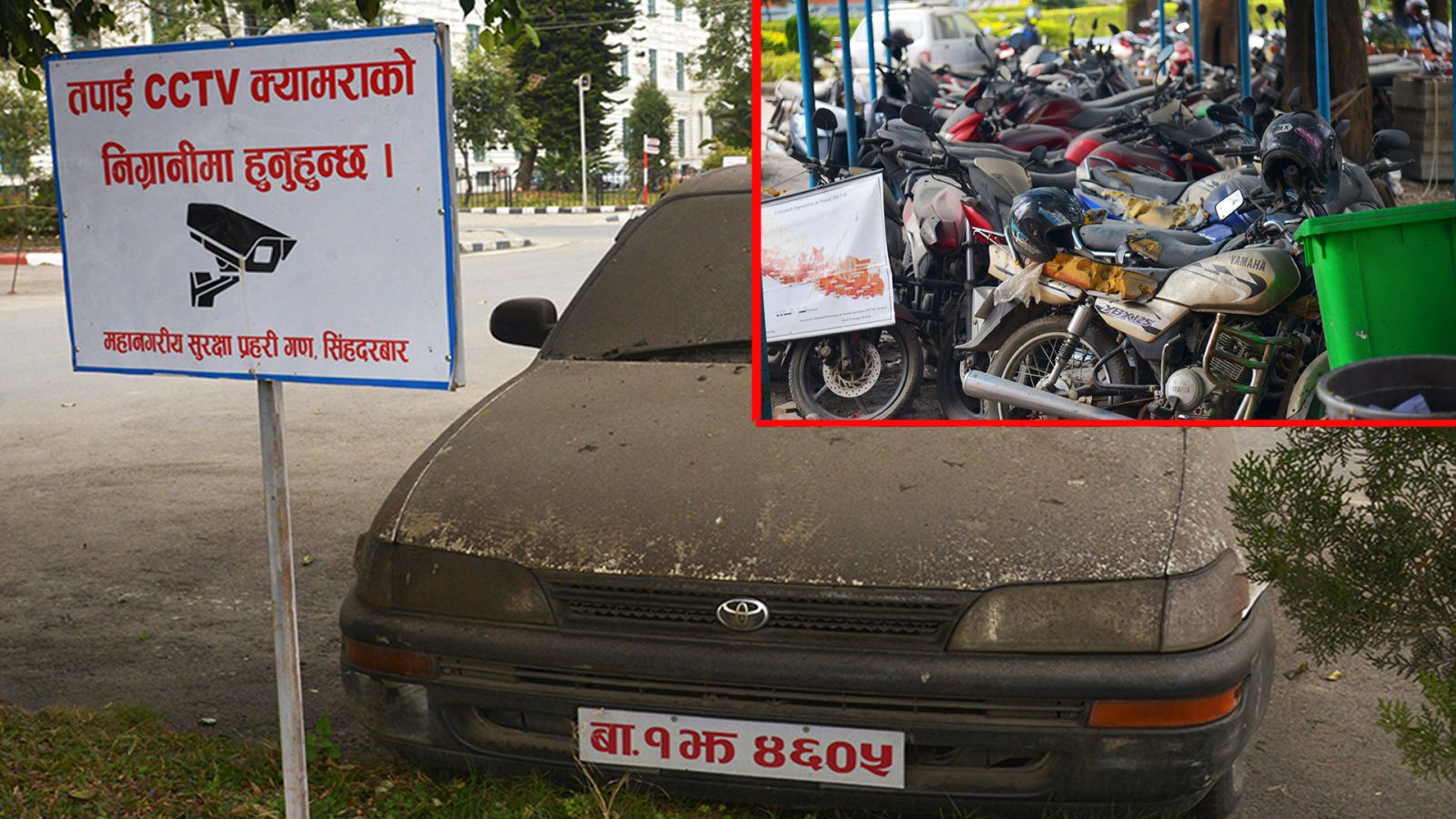 सिंहदरवारका सवैजसो पाकिङस्थलमा पुराना गाडी र मोटरसाइकल त्यत्तिकै फ्याकिरहेको देख्न सकिन्छ । सरकारी खर्चमा नयाँ नयाँ गाडी र मोटरसाइकल आएपछि कर्मचारीले पुराना सवारी पार्किङमा छोड्ने गरेका हुन् ।